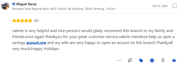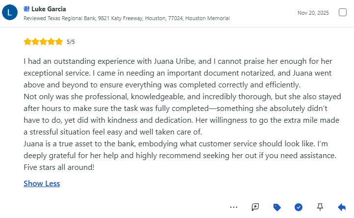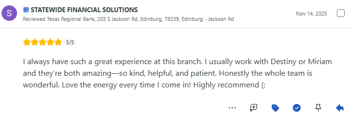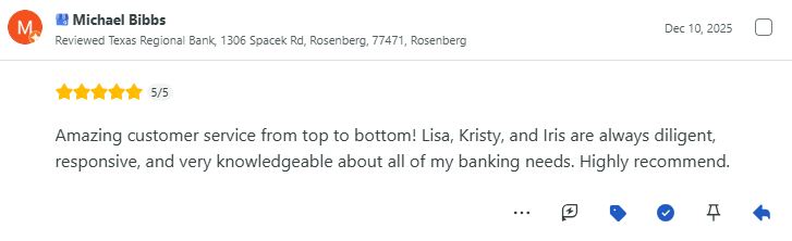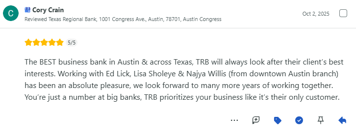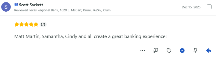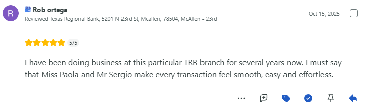 In the fourth quarter, Team TRB finished the year strong, with our customers continuing to recognize us for exceptional service, professionalism, and the customer-focused culture that defines our organization. These reviews highlight the impact of everyday actions that build trust: listening closely, following through, and taking time to understand each customer’s needs. Together, they tell the story of how Team TRB continues to deliver meaningful experiences, one relationship at a time.