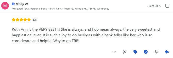 Online reviews don’t just help others discover TRB, they give customers a way to share their experience and help us better serve new clients. If a customer shares positive feedback, thank them, and encourage them to leave a Google Review. It’s a simple way to strengthen relationships and continue building trust in the communities we serve.