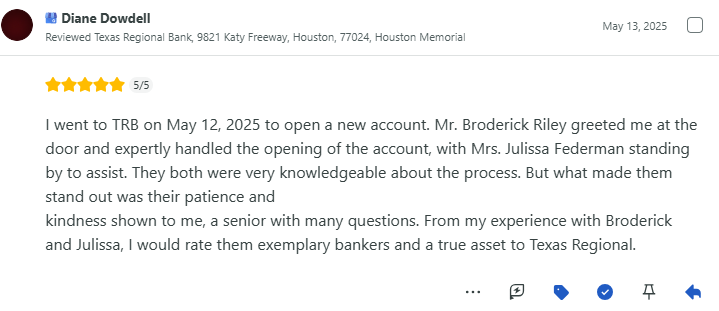 In the third quarter, our customers continued to recognize Team TRB for exceptional service, professionalism, and the customer-focused culture that defines our organization. These reviews highlight the impact of everyday actions that build trust: listening closely, following through, and taking time to understand each customer’s needs. Together, they tell the story of how Team TRB continues to deliver meaningful experiences, one relationship at a time.