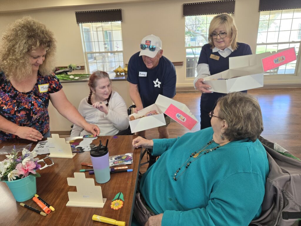 - Keri Sandvig and Kim Boren spent time at the Heights of Bulverde Rehabilitation Center with Project 10:27 in an activity day with seniors playing games and doing arts and crafts.