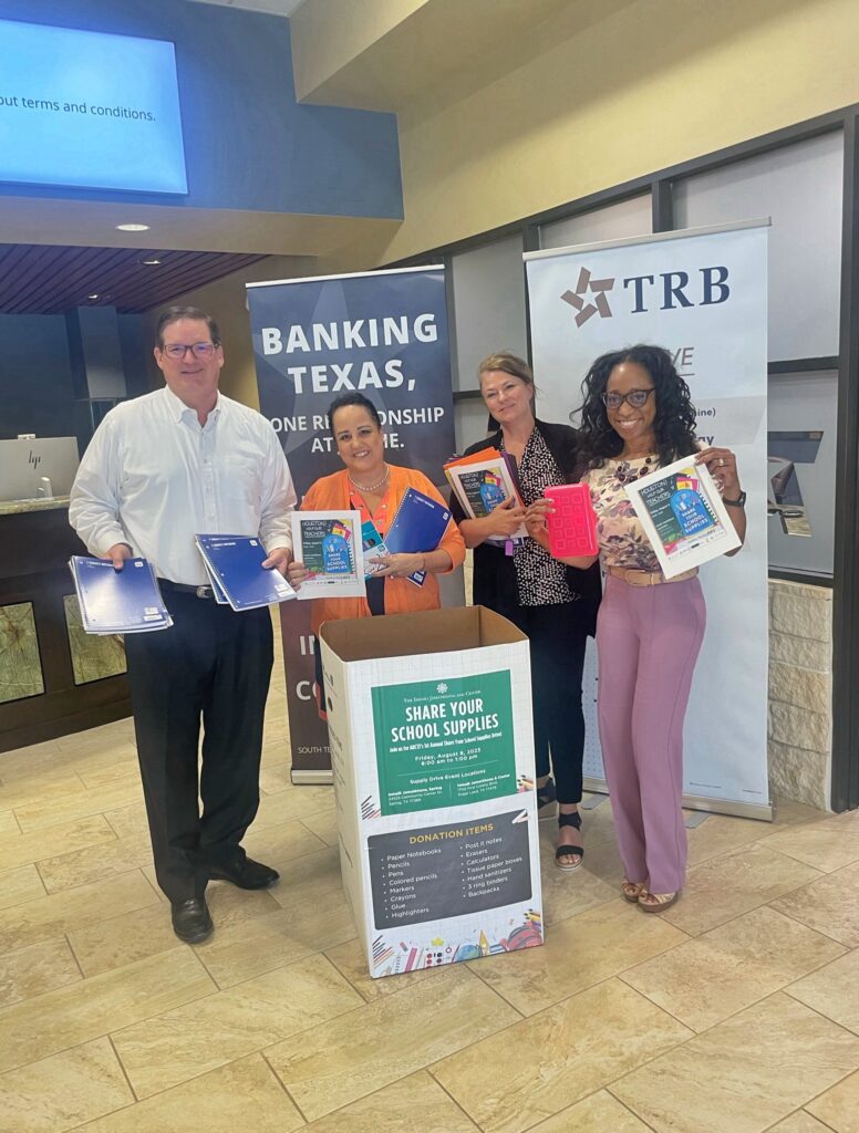 - Lisa Ta and Kristy Rodriguez partnered with ABC 13 and the local community center, The Ismaili Jamatkhana Center, for a back-to-school supply drive benefitting TeachersAID, a program hosted by the Houston Food Bank. Associates at the Memorial and Cypress branches maintained collection bins and donated to the supply drive.