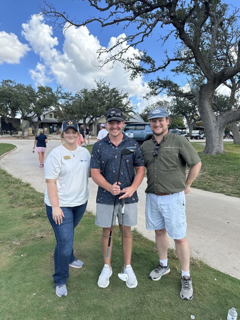 - John Wells, Emily Kirchner, and Angela Egli participated in an annual fundraiser golf tournament for the Fredericksburg Chamber of Commerce.