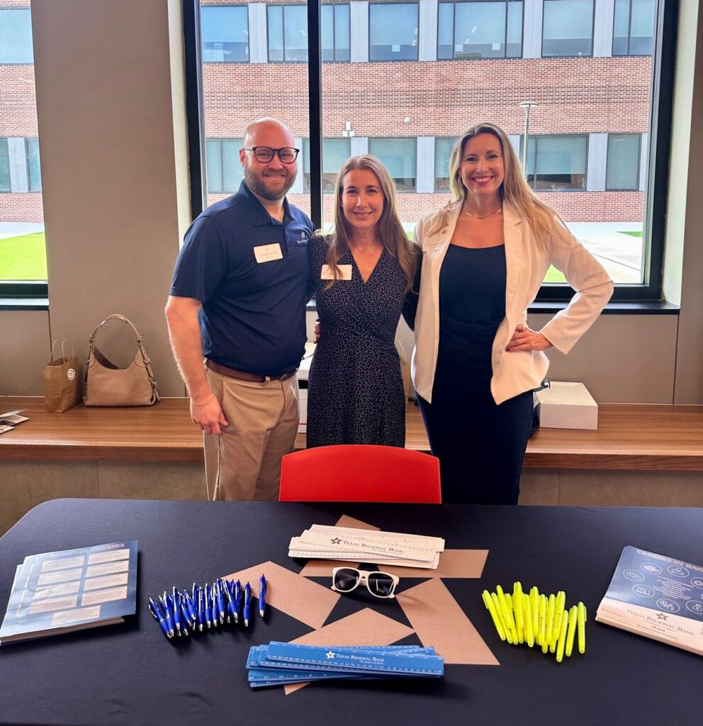 - Cristie Escochea, Jacque Kruppa, and Emily Diebitsch volunteered at Emmit J. Conrad High School’s Youth at the Booth Voter and Community Empowerment event. They spoke with students about careers in banking and gave out TRB promo items.