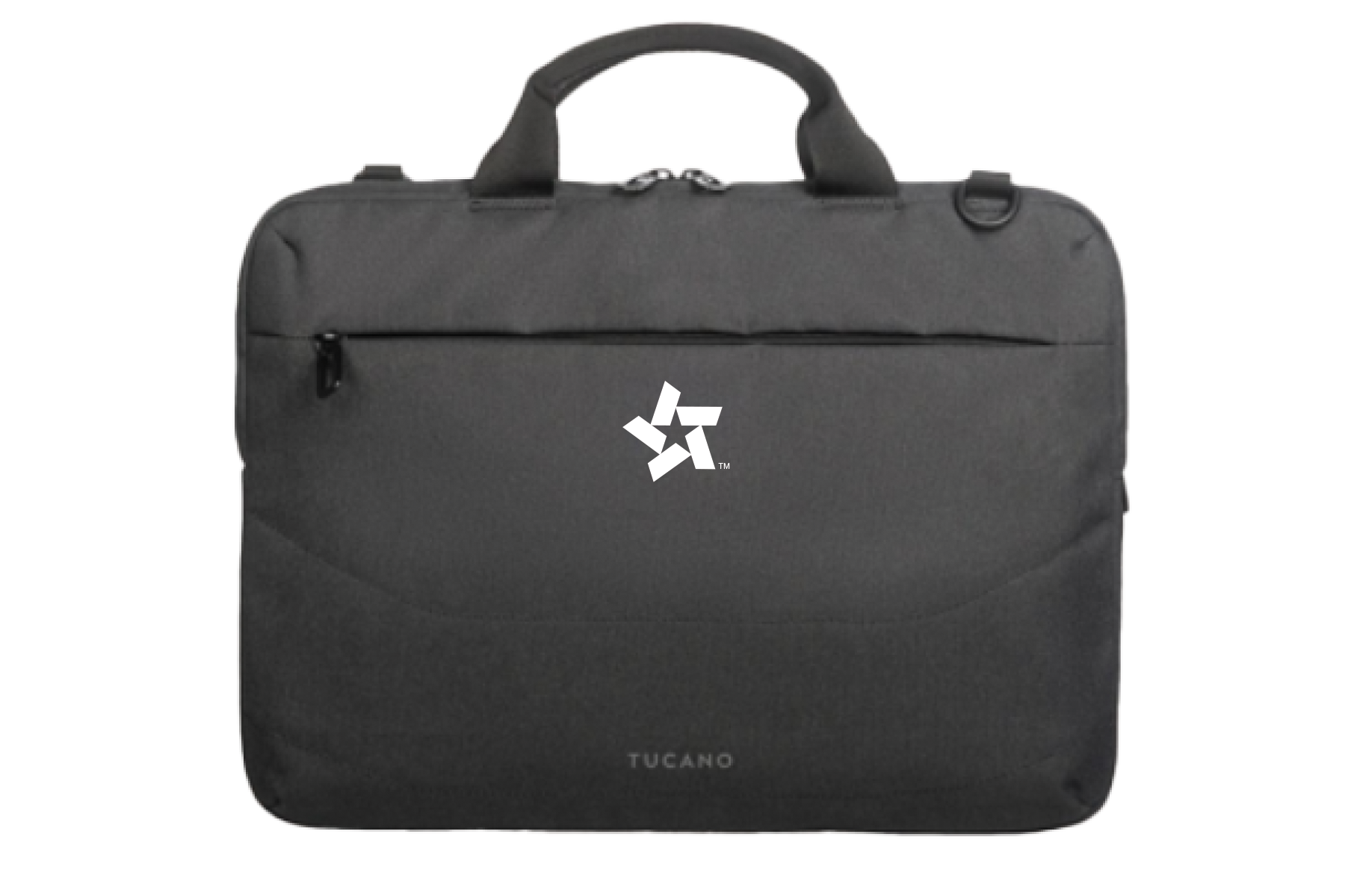 Modern slim business bag made from premium recycled polyester, utilizing 20 plastic bottles